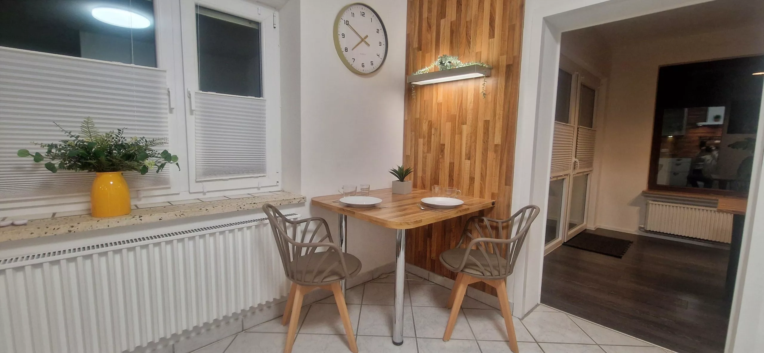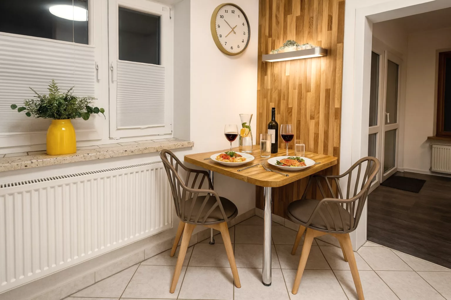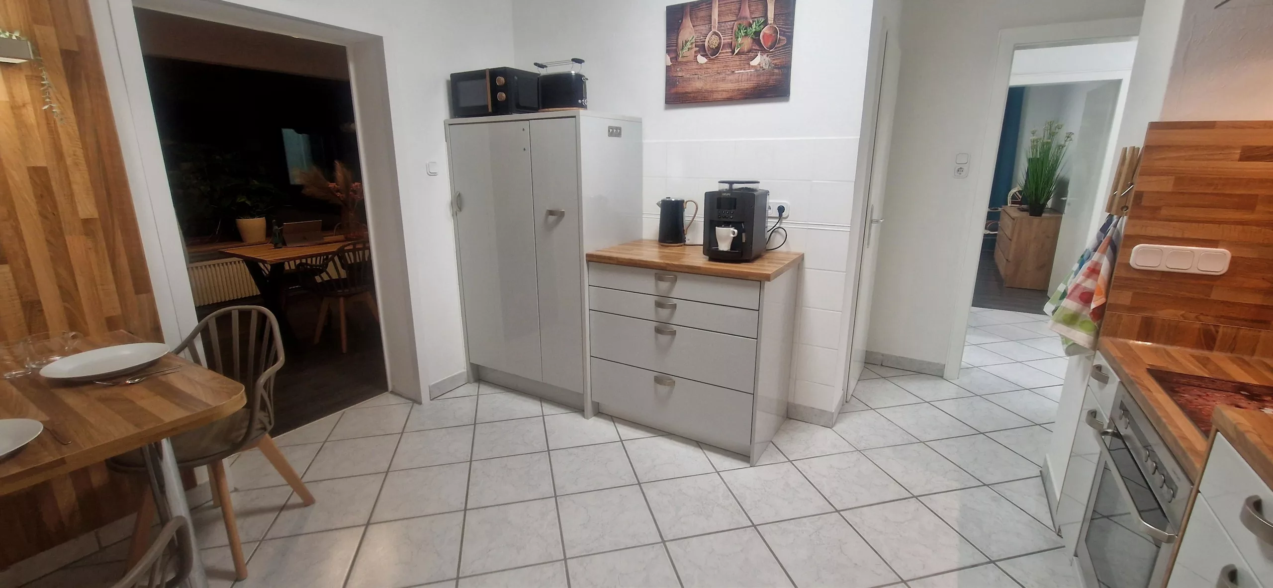 Der großzügige Essbereich lädt zu geselligen Mahlzeiten ein und bietet ausreichend Platz für gemeinsame Abende. Hier können Sie kulinarische Highlights genießen und die entspannte Atmosphäre unserer Ferienwohnung voll auskosten. Eine Ferienwohnung günstig buchen bedeutet auch, in einem gemütlichen Essbereich zusammenzukommen.